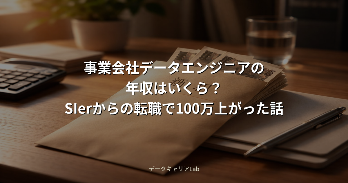 私はSIerから事業会社のデータエンジニアに転職して、年収が100万円以上上がりました。この記事では、SIer時代と事業会社の年収を具体的な数字で比較しながら、データエンジニアの年収のリアルをお伝えします。